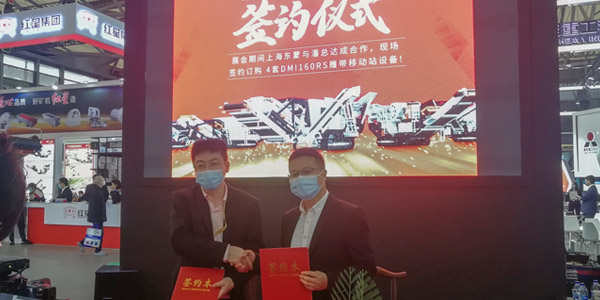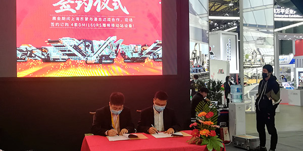 開(kāi)展首日,上海東蒙與潘總現(xiàn)場(chǎng)簽訂履帶移動(dòng)站訂單